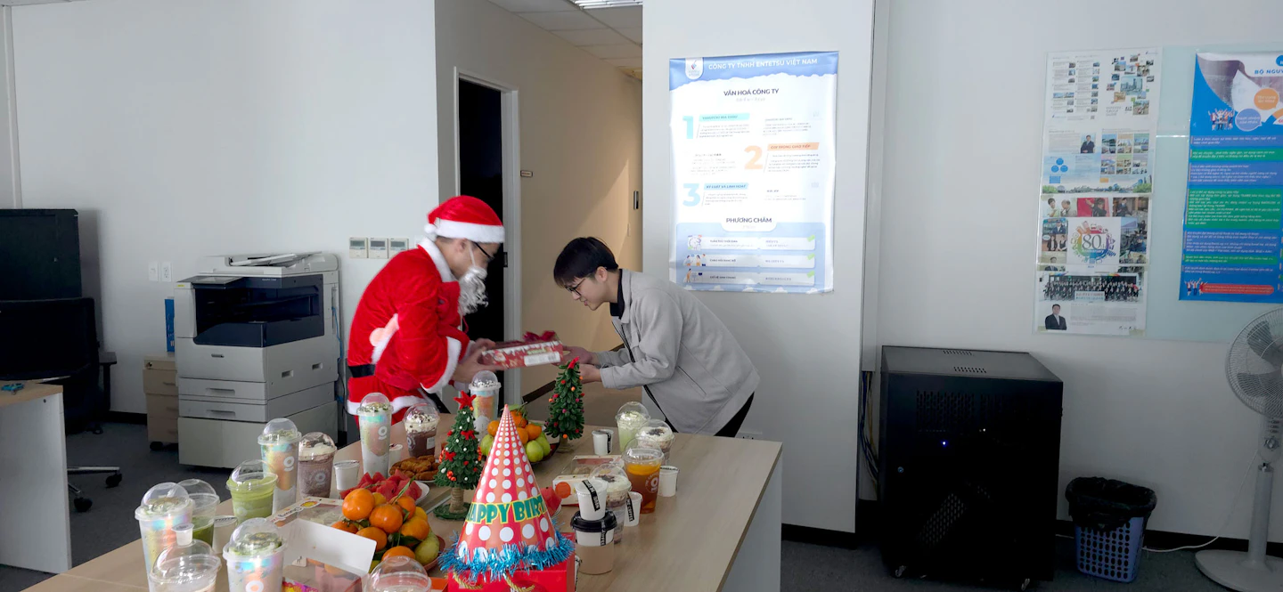 本日、EVNのメンバーは、サンタクロースが突然オフィスを訪れ、素敵なプレゼントを届けてくれるという、特別なクリスマスを迎えました。